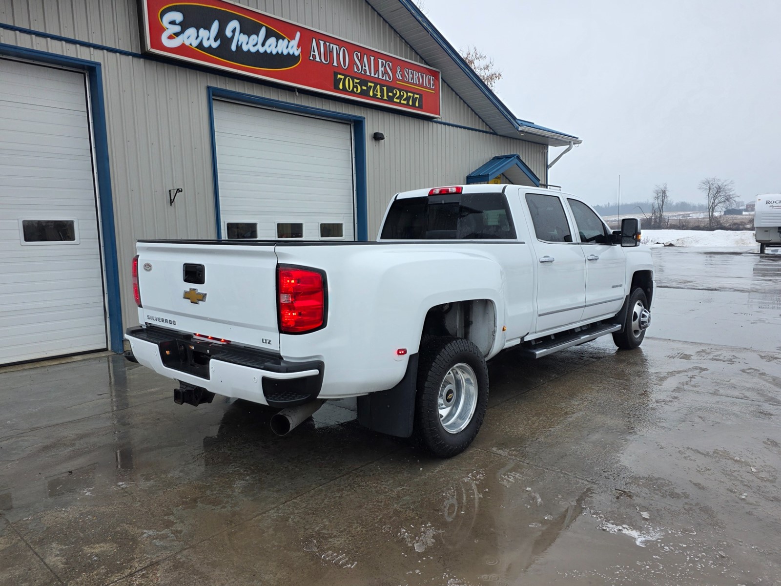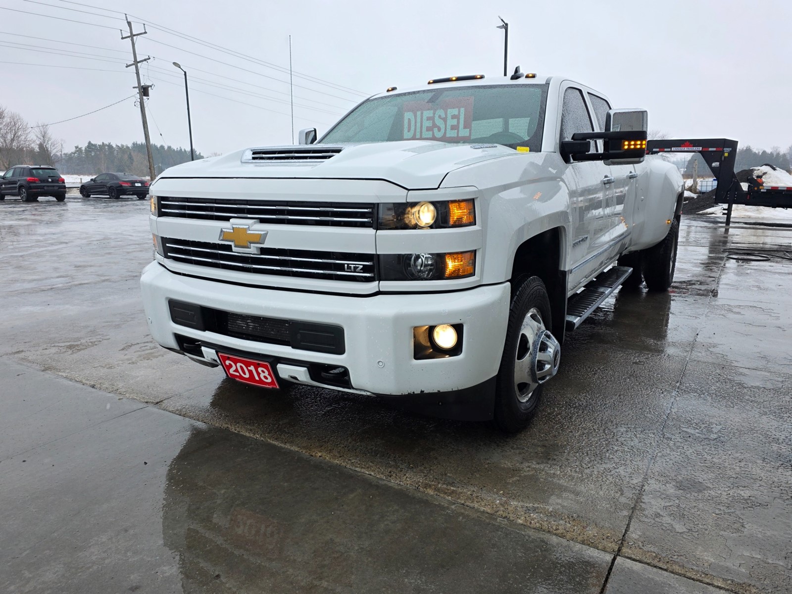 2018 Chevrolet Silverado 3500HD LTZ 6.6L Duramax Diesel Allison Automatic Transmission 4x4 Crew Cab 8 Foot Box Fifth Wheel Rails Power Windows Power Door Locks Power Mirrors Remote Keyless Entry Remote Start Black Leather Interior Heated Front Seats Seats 5 Center Console Power Sunroof Built In Brake Controller AM FM CD Satellite Radio Bluetooth Heated Steering Wheel Steering Wheel Controls Built in Brake Controller Exhaust Brake Power Adjustable Pedals Tilt & Telescopic Steering Wheel Rear Heated & Sliding Glass