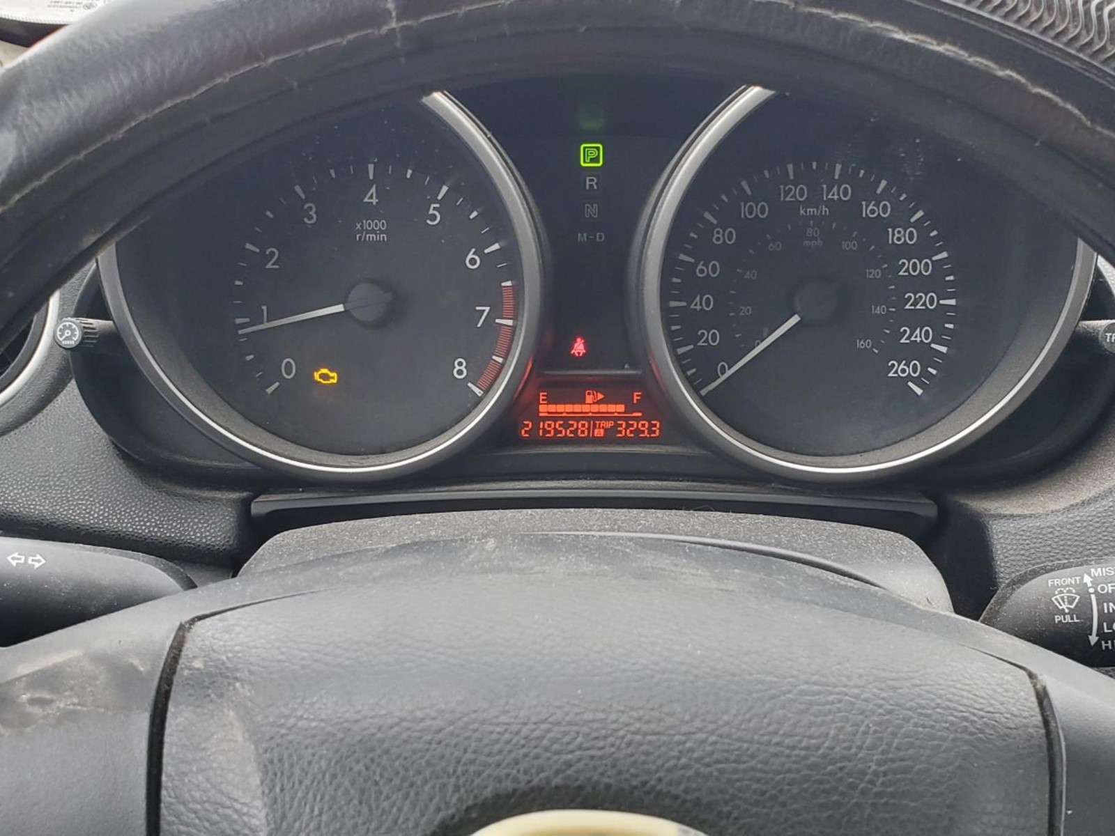 Check engine allumé / Besoin alignement / Pare-choc avant craqué