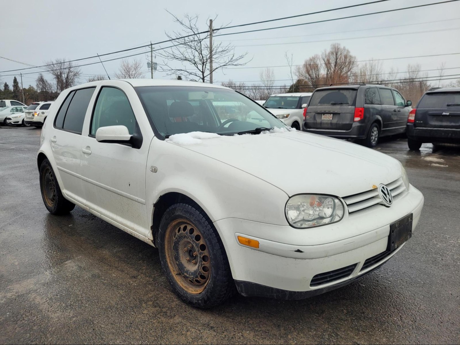 2007 VW Golf City in White. The vehicle has 156,272km. Runs and drives ok. The body is in decent shape for the age. Some rust spots here and there. No check engine light. Slight vibrations felt in the cabin. We don't perform any mechanical/safety inspections. The vehicle is sold as is and might need some work.