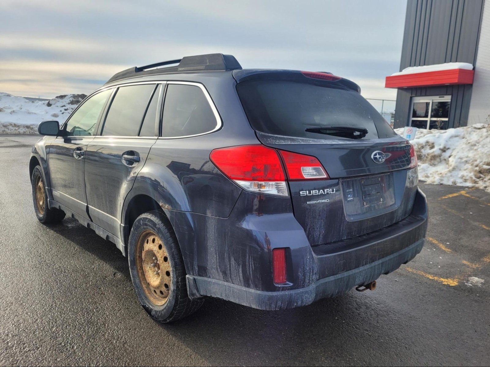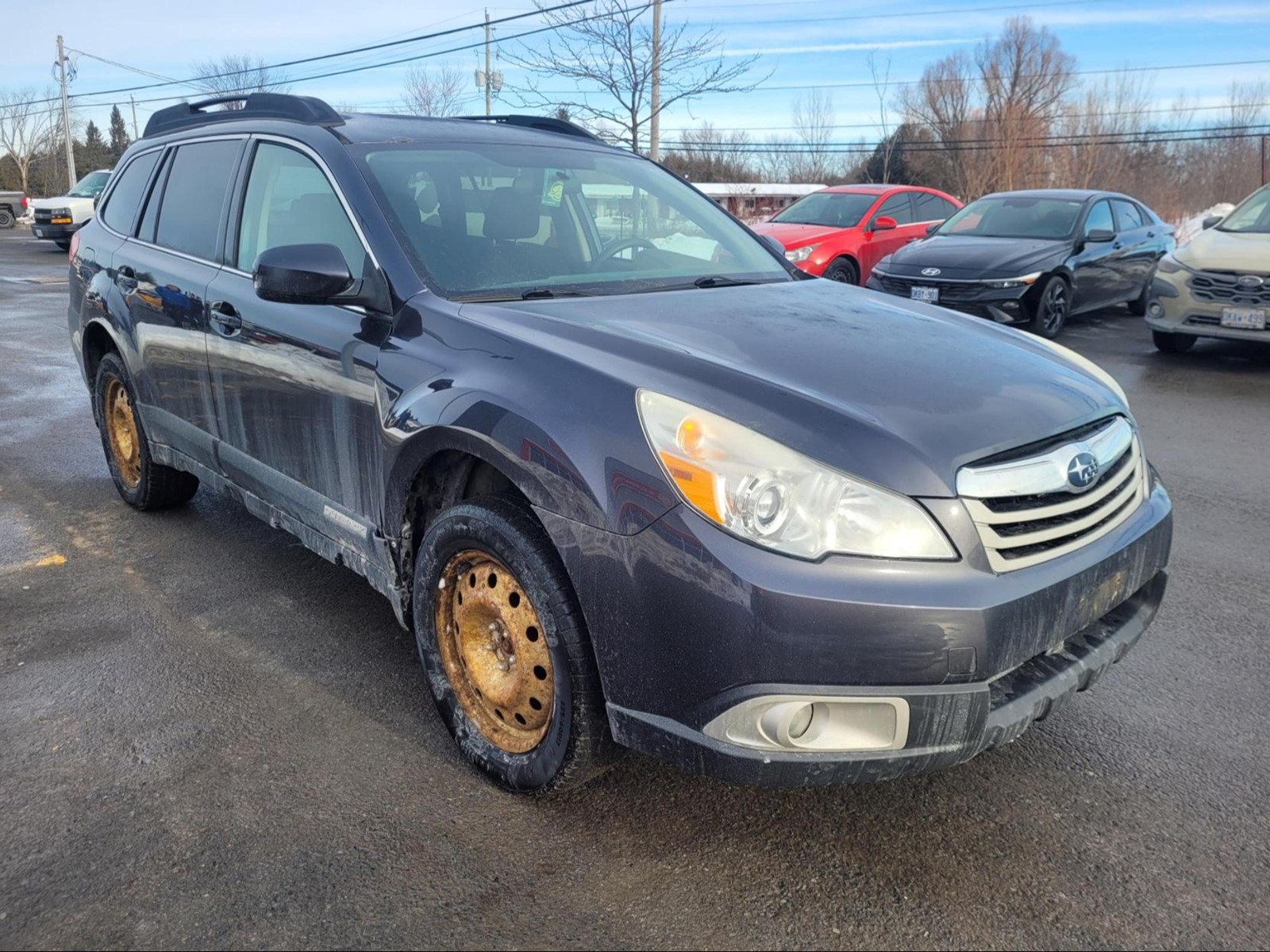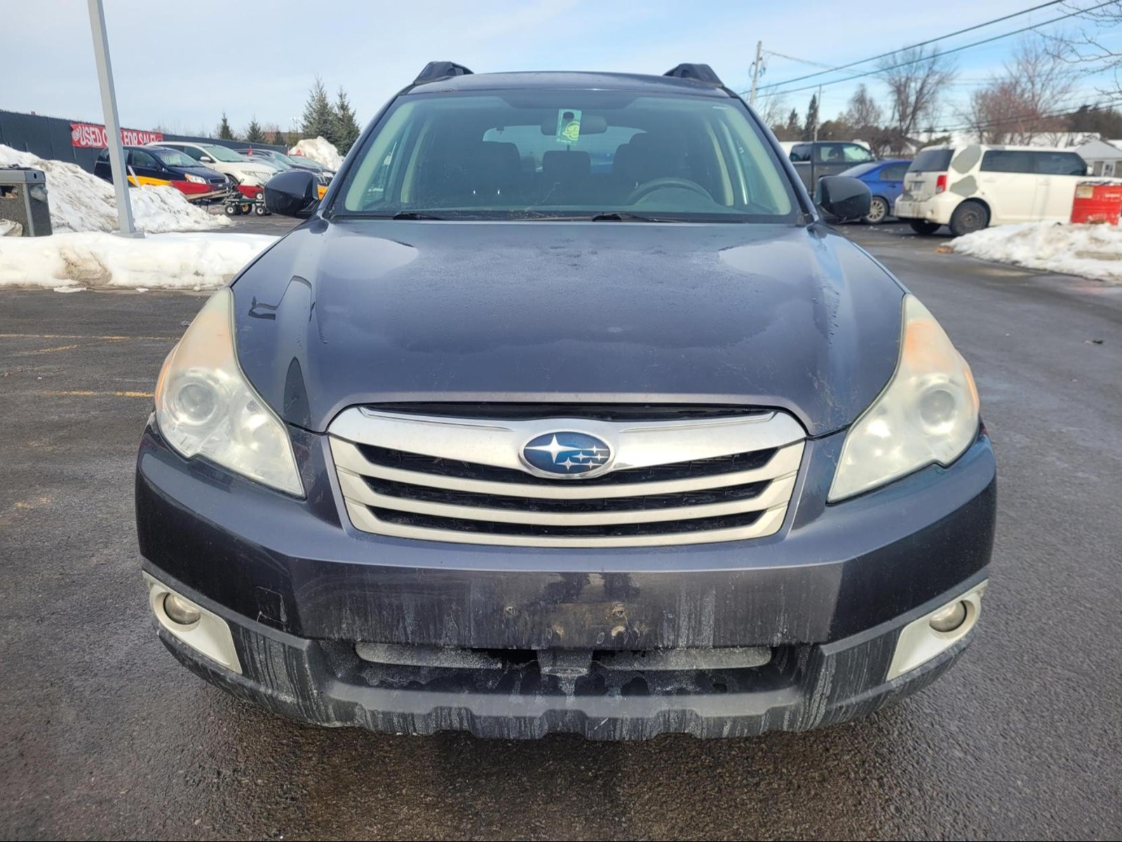 2012 Subaru Outback in Graphite Grey Metallic . The vehicle has 290,279km. The vehicle runs and drives ok. The body is in ok shape. There is check engine TC light on . Might need a new battery. Slight vibrations felt from the engine bay/inside the cabin. Exhaust Leak. We don't perform any mechanical/safety inspections. The vehicle is sold as is and might need some work.