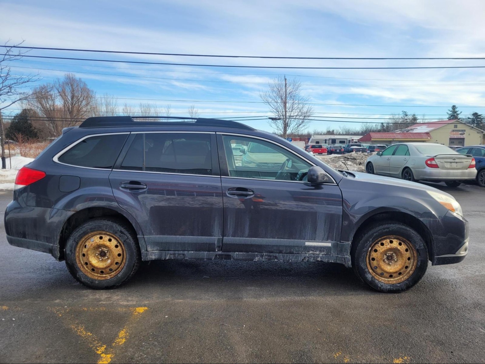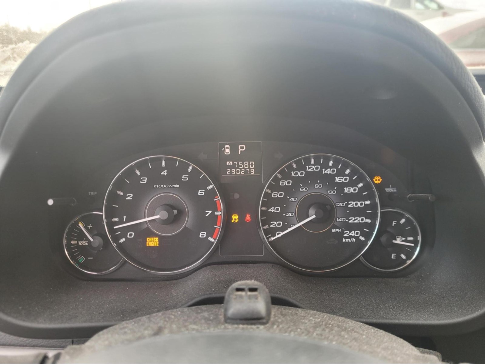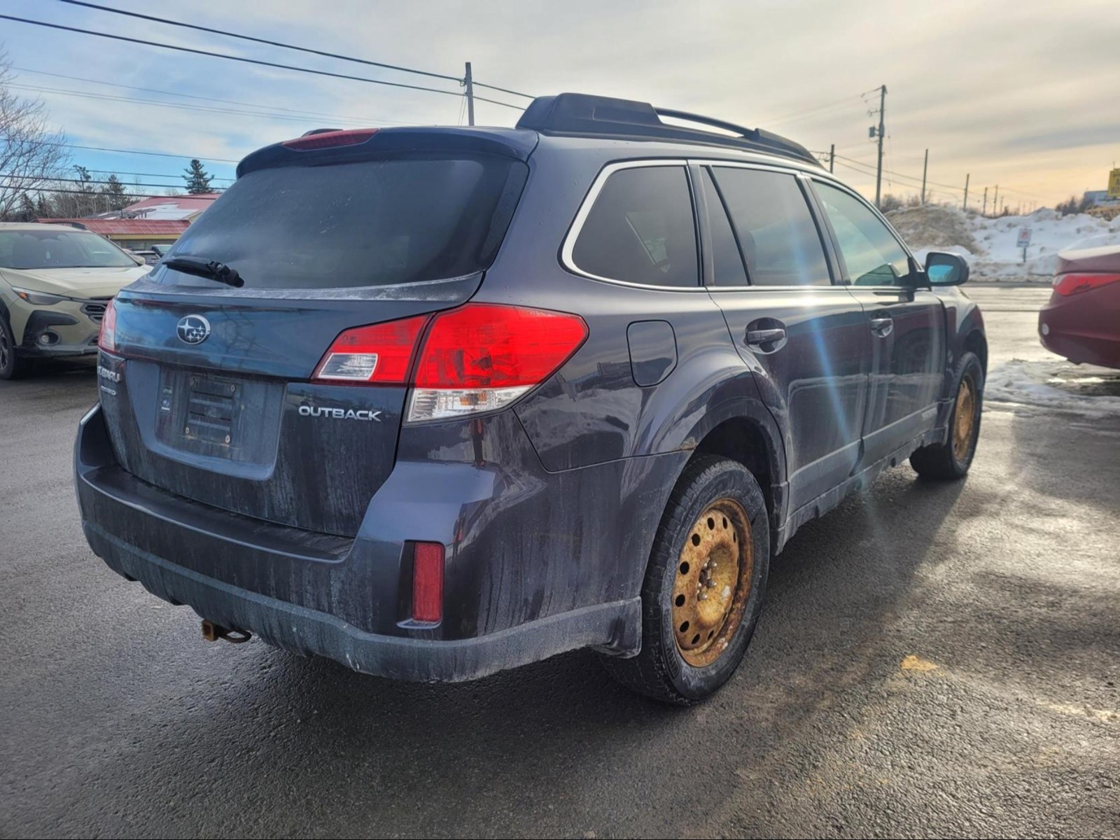 2012 Subaru Outback in Graphite Grey Metallic . The vehicle has 290,279km. The vehicle runs and drives ok. The body is in ok shape. There is check engine TC light on . Might need a new battery. Slight vibrations felt from the engine bay/inside the cabin. Exhaust Leak. We don't perform any mechanical/safety inspections. The vehicle is sold as is and might need some work.