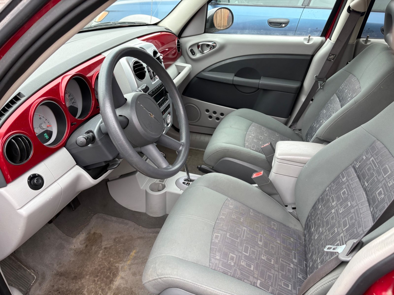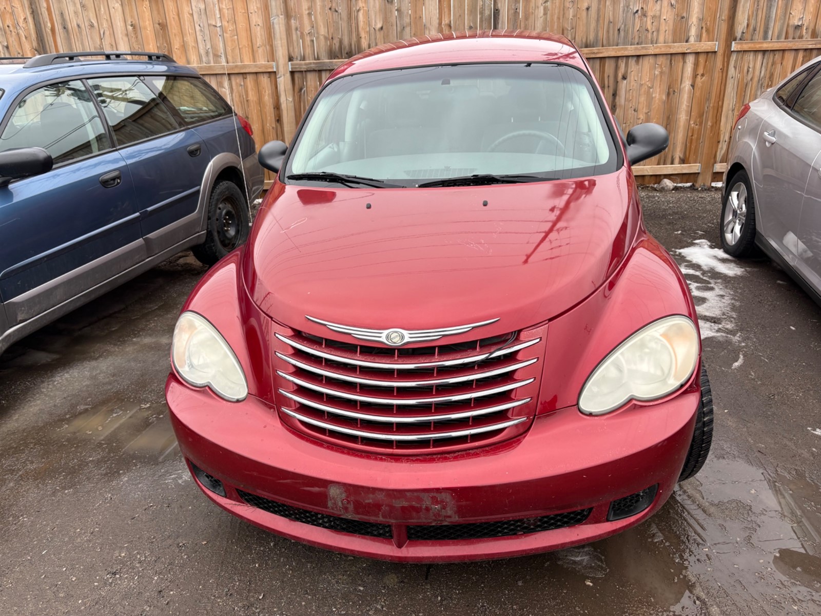 2007 Chrysler PT Cruiser. Red exterior with a grey cloth interior. The vehicle odometer is km and runs and drives well with no check engine light. There is a damaged rear bumper as seen in pics. The vehicle is sold as is and may require additional work. We do not perform mechanical checks or provide safety inspections.