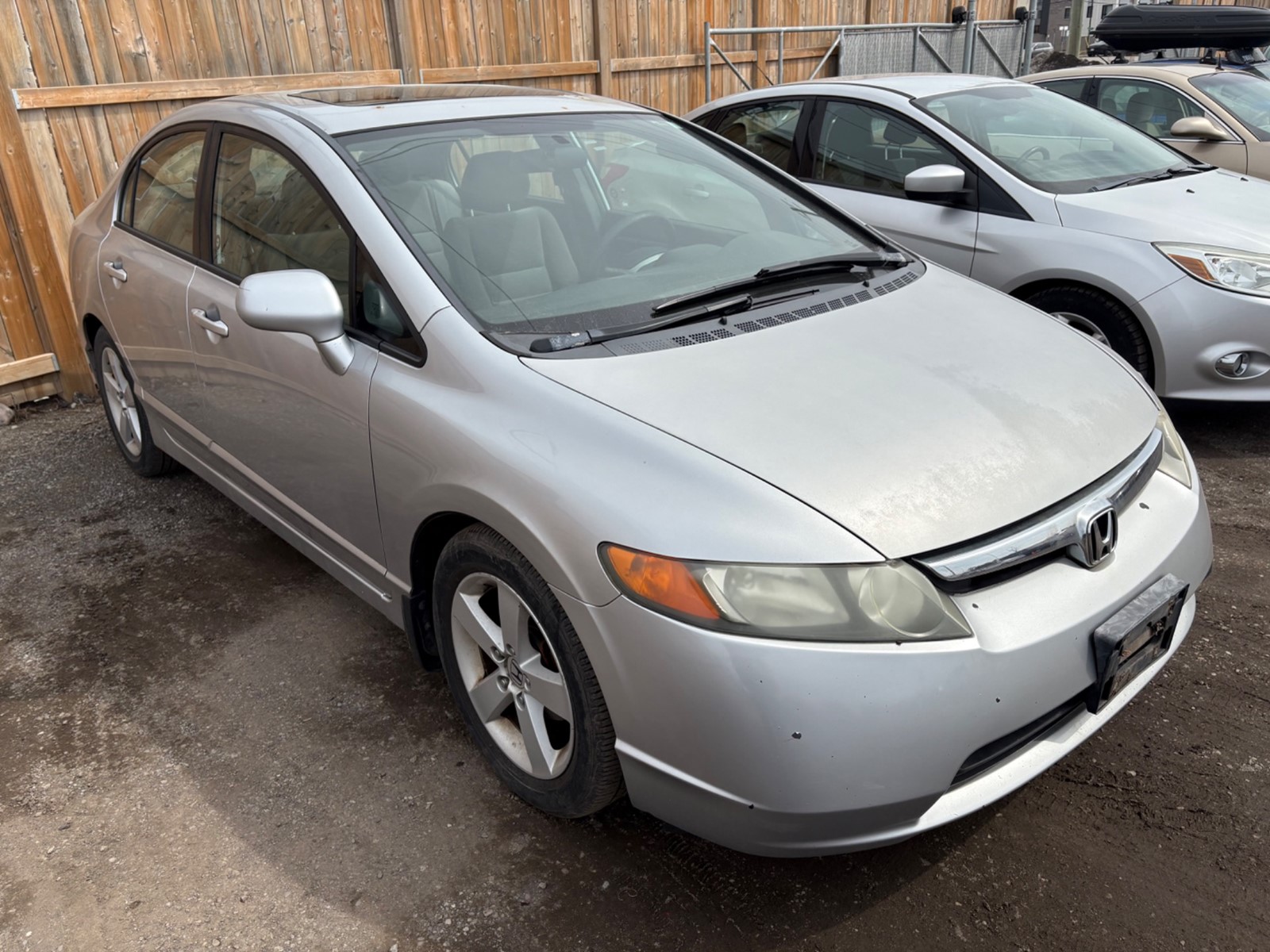 2006 Honda Civic EX. Silver exterior with a grey cloth interior. The vehicle odometer is 185,034 km and runs and drives well with no check engine light. There is a damaged front bumper as seen in pics. The vehicle is sold as is and may require additional work. We do not perform mechanical checks or provide safety inspections.