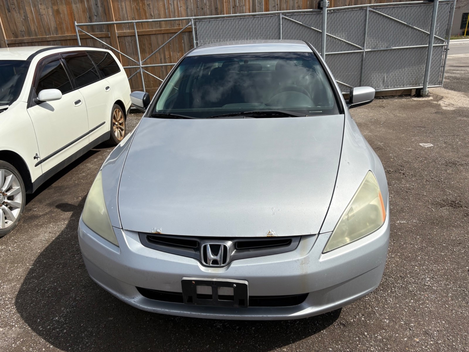 2004 Honda Accord LX. Silver exterior and grey cloth interior. The vehicle odometer is 232,953 km and runs and drives with no engine light on. Manual transmission. The vehicle is sold as is and may require additional work. We do not perform mechanical checks or provide safety inspections.
