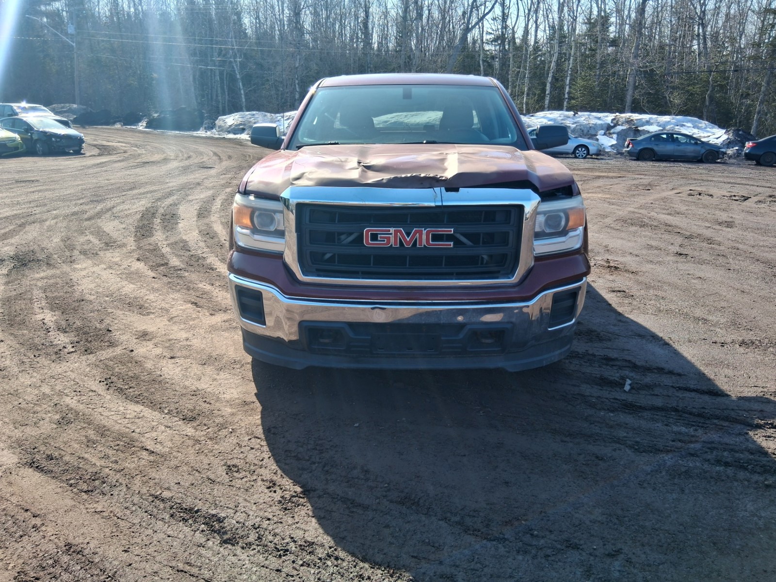 This 2014 GMC Sierra 1500 has received a lot of tough love in its lifetime. Damage on the hood, rockers and box are memories of a fun trip through the bush. The low mileage (sub 250km) and large box space makes this a perfect fit for those in need of a work truck or bush beater.