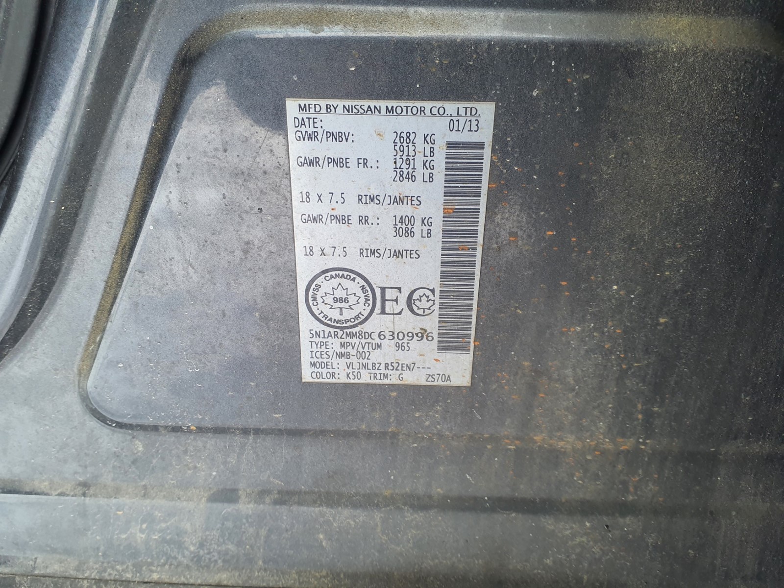 VIN: 5N1AR2MM8DC630996