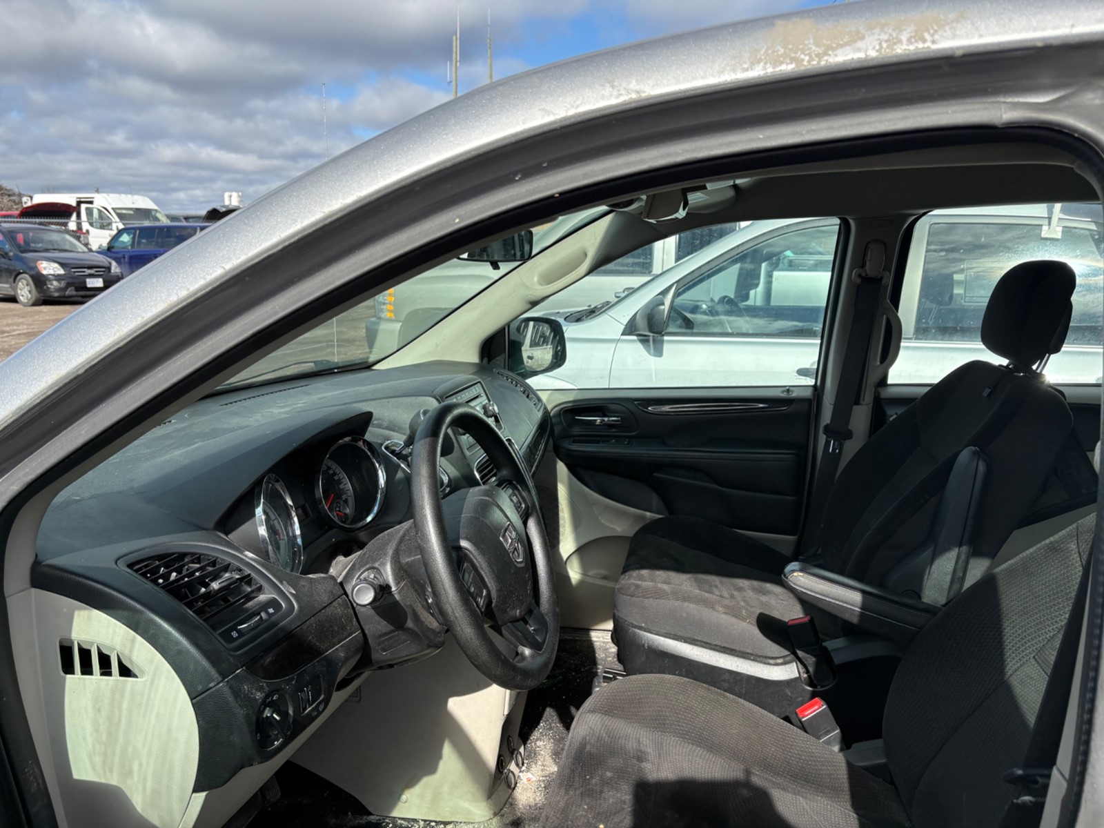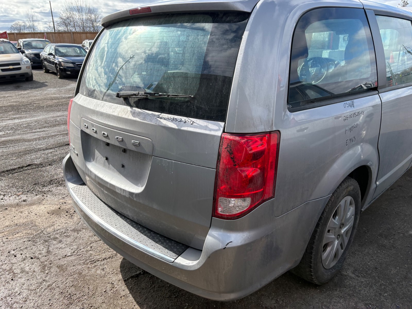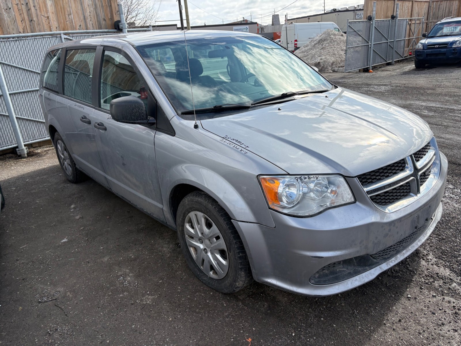 2018 Dodge Grand Caravan SE. Silver exterior with a black/grey cloth interior. The vehicle odometer is 169,647 km and runs and drives with no engine lights on. There is a cracked windshield that will need to be replaced. The vehicle is sold as is and may require additional work. We do not perform mechanical checks or provide safety inspections.