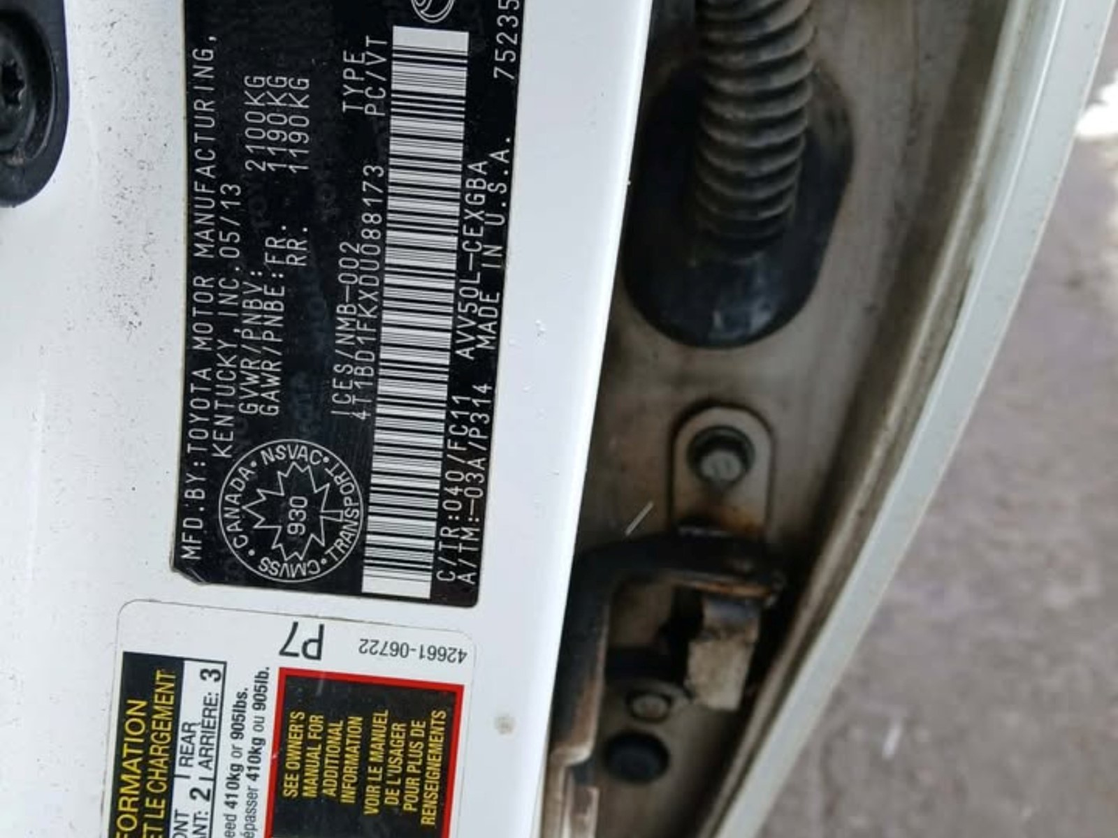 VIN: 4T1BD1FKXDU088173