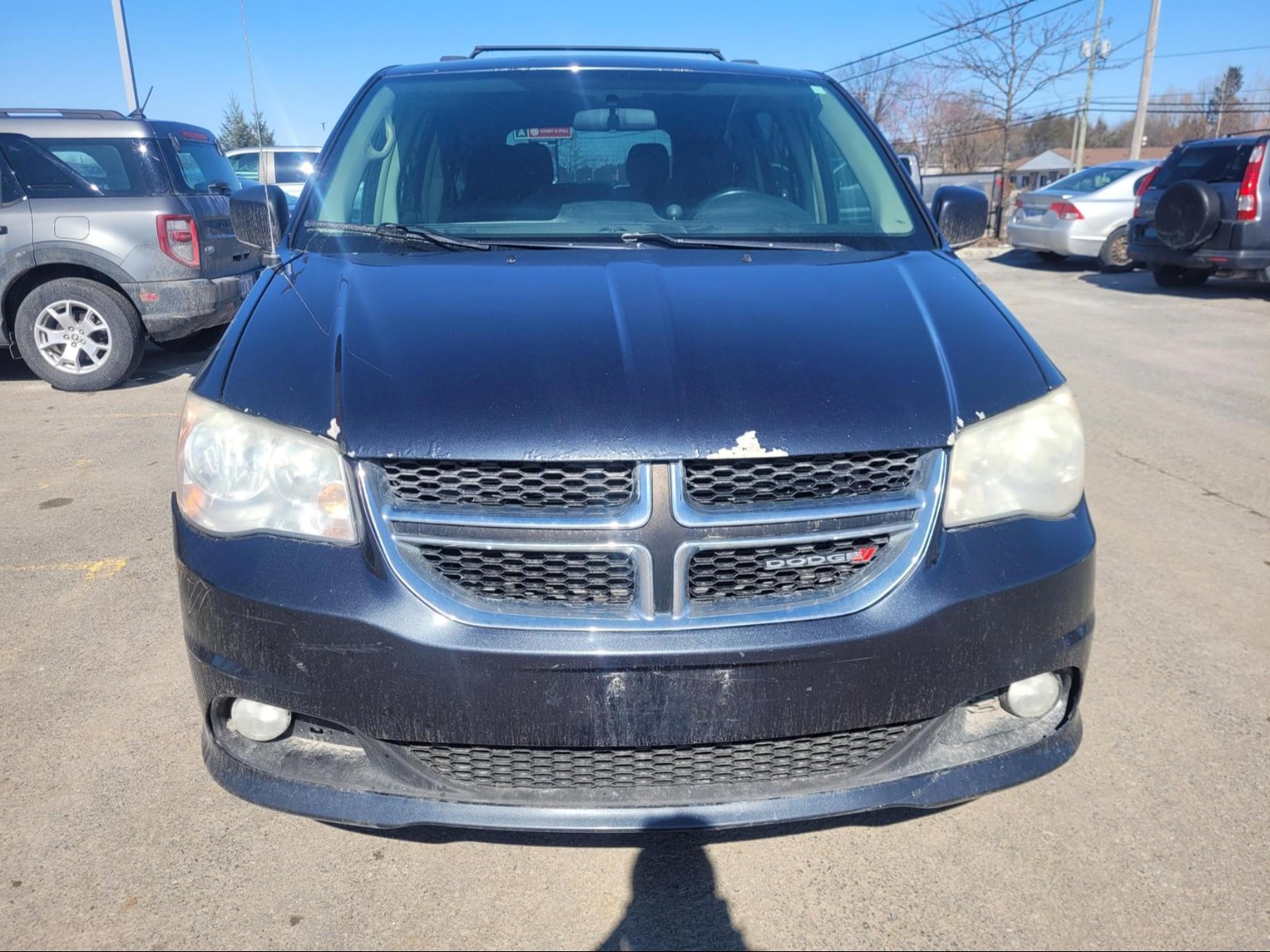 2013 Dodge Caravan Crew in Brilliant Black Crystal Pearl. The vehicle has 230,441km. The vehicle runs and drives ok. Check engine light Tpms lights are on. Slight noise heard in the cabin while driving. Front suspension might need attention. Some minor rust spots found around the vehicle. We don't perform any mechanical/safety inspections. The vehicle is sold as is and might need some work.